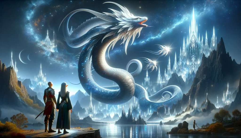 The Star-Serpent emerged from the shadows, its scales a mosaic of stars and galaxies. Its eyes, pools of infinite wisdom, regarded us with both curiosity and disdain. This was a creature that had seen the birth of worlds and the fall of empires. “Seekers of Aether,” the serpent’s voice reverberated through the chamber, a melody of time itself. “Why have you come?” Irielle stepped forward, her courage unwavering. “We seek your guidance, Star-Serpent. The Spires are failing, and only your wisdom can save us.” The serpent’s gaze turned to me, and I felt the weight of eons pressing down. “And what of you, Aether-born? Do you seek knowledge or power?” “Neither,” I whispered, my voice barely audible. “I seek balance.”
