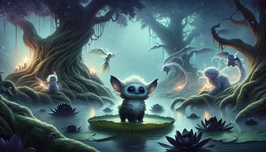 Dreaming in Duskfall Mire is an art form best left to professionals or the absolutely desperate. I, regrettably, was the latter. The world shimmered, and I found myself standing atop a lily pad the size of a dinner table, drifting down a river of liquid moonlight. Trees arched overhead, their branches weaving riddles from shadow and memory. A Memory Drake flitted past, trailing giggles like bubbles. “Welcome, Merrit,” crooned a voice behind me. I spun, nearly tumbling into the silvery stream. The Whisperfang hovered nearby, coiled and elegant, its body translucent as a sigh, eyes deep and fathomless. It radiated silence—the kind that follows the punchline of a terrible joke. “You are the bringer of laughter?” it asked, voice chiming and hollow. I cleared my throat. “On good days. On bad days, I mostly bring confusion.” The Whisperfang regarded me, tongue flickering. “Most who come here offer riddles or tears. You bring neither. Why?” “Because the world already has enough riddles and tears,” I replied, surprising myself. “But not enough laughter. Or at least, not enough of the right kind—the sort that untangles knots and lets the light in.” The dragon’s eyes narrowed with something like curiosity. “Then, show me laughter.” I wracked my brain. Jokes? Stories? Physical comedy? The lily pad began to tilt dangerously. “Once,” I began, “there was a Shadekin who mistook a carnivorous lily for a hat. The lily, being fashion-conscious, agreed—but only if the Shadekin agreed to be the feather.” The Whisperfang issued a sound like the wind snorting. Encouraged, I plunged on. I told stories of my own mishaps—of tripping into a puddle that turned out to be a sentient frog’s bath, of mistaking a Memory Drake’s tail for a scarf at a festival. I mimed, I juggled (badly), I sang (worse). The trees leaned in, their leaves quivering with anticipation. The Whisperfang’s coils shimmered, and for a moment, I saw a smile ripple through its translucent form. “Enough,” it said at last, voice softer. “You have shown me laughter. But laughter is not always joy. What do you find in the shadow?” I considered. “Sometimes… just a place to hide. But other times, a place for secrets, for dreams, for hope you’re not quite ready to show the world. Laughter lets the shadow breathe.” The Whisperfang uncoiled, drifting closer. It touched my brow with its snout—cool, like mist. “Then you have fulfilled the prophecy. Remember this: in shadow, laughter is the rarest bloom.” —