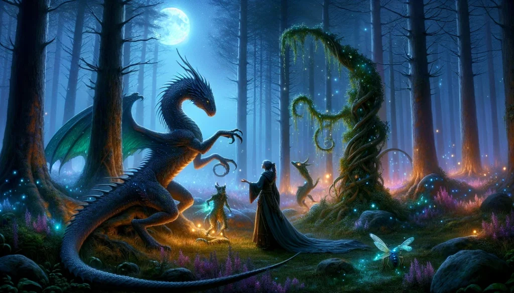 The Duskwyrm—whom Lilt called Moonglow—regarded me with curious, knowing eyes. In that moment, I felt a connection, an understanding that transcended words. The forest, in its wisdom, had brought us together, not as foes, but as guardians of a shared world.
