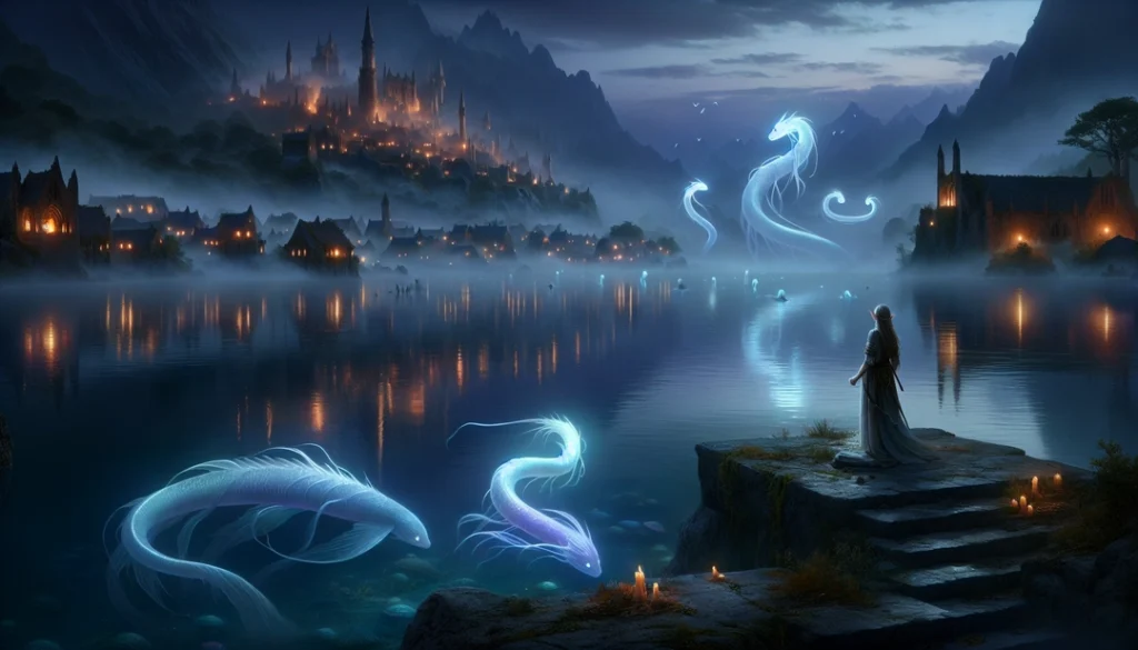 I sought the wisdom of the Tidewyrms, those majestic guardians of the water depths. As the sun dipped below the horizon, I ventured to the shores where these colossal beings often surfaced, their scales shimmering with the hues of the twilight sea. A Tidewyrm, known as Selathor, emerged from the depths, his eyes like darkened pools reflecting the stars. He spoke not with words, but with a resonance that thrummed through the water, a language of vibrations and echoes. “Selathor, guide us,” I implored, feeling the ripples of his presence. “The Deep Chime calls, but the path is obscured.” The Tidewyrm’s response was a gentle wave, a promise of revelation. The answer lay not in haste, but in harmony—a balance between the living and the Drowned, between past and present. —