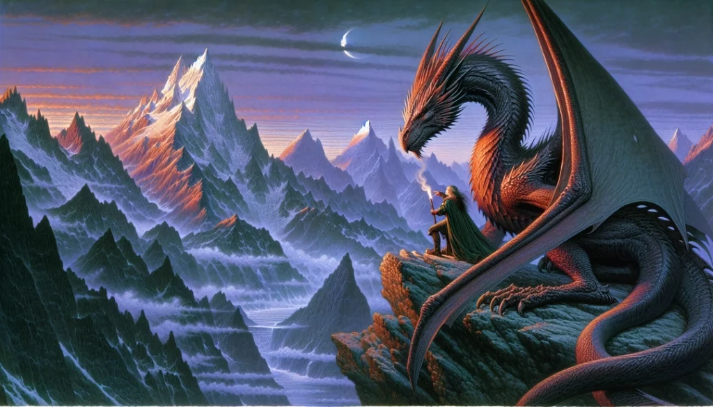 Under the vast, azure canopy of the Itharûn sky, Highspire Citadel stood resolute against the winds that eternally swept through its granite halls. Aurelion Flameheart, leader of the Wardens of the Flame, gazed over the rugged mountain ridges that cradled his kingdom. The scars of the Last Sky War were still visible—a tapestry of ruin and resilience woven into the landscape. Beside him, Kaelen Duskveil, his cautious advisor and old friend, traced the horizon with a practiced eye. “The winds speak of change, Aurelion,” Kaelen murmured, his voice a mix of hope and wariness. Aurelion nodded, his thoughts drifting to the new generation of dragon riders. Among them was Nyra Flamebond, his most promising apprentice. Her bond with the Embermane dragon Ignivar had rekindled a sense of unity that Itharûn desperately needed. “The time has come to honor the Oath of Reclamation,” Aurelion declared, his voice carrying the weight of a vow.