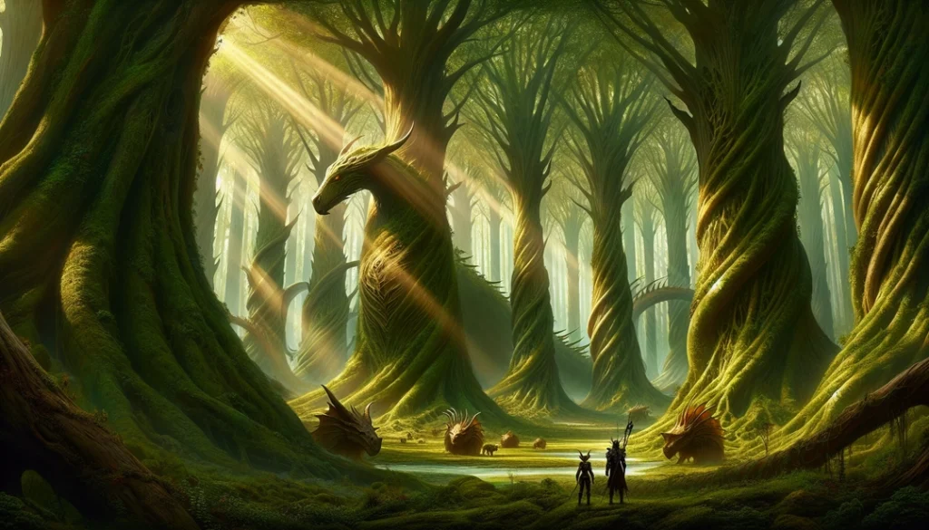 As dusk fell, the forest grew still, as if holding its breath for our passage. We reached the grove’s heart, where the earth hummed with dormant power. There, beneath gnarled roots and mossy stones, the Grove-Wyrms slumbered—a sight of majesty and awe.