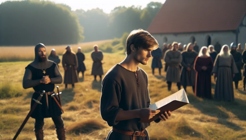 Eadric trudged along the dirt road that wound through the village, his thoughts consumed by the Domesday Book’s implications. Around him, villagers went about their daily tasks with a wary eye on the horizon, anticipating the arrival of the king’s reeves. At the village green, he encountered Beorn, a long-time friend whose family had fared no better under Norman rule. “Have you heard?” Beorn called, gesturing toward a group of villagers gathered nearby. “They’re demanding more than tithe. They want labor.” Eadric joined the circle, listening as an elder spoke, his voice a blend of anger and despair. “The reeves say we must give not only our harvest but our time. They demand we send men to work the lands of the Norman lords.” Murmurs of discontent rippled through the crowd. Eadric felt a surge of indignation. “And what of our own fields? How are we to survive if we give both our crops and our hands?” The elder shook his head. “This is the way of things now. But we cannot let them take everything.” A plan began to form in Eadric’s mind, a way to resist without open rebellion. “We must gather our own. We can meet their demands, yet find ways to keep what is ours.” Beorn nodded, understanding his friend. “We’ll need to be careful, Eadric. The Normans do not take lightly to defiance.” Eadric met his friend’s gaze, a silent pact forming between them. They would navigate this new order together, walking the fine line between survival and resistance. As the sun dipped below the horizon, casting the village in shadow, Eadric felt the weight of his resolve. The path ahead was uncertain, but it was one he was determined to follow.