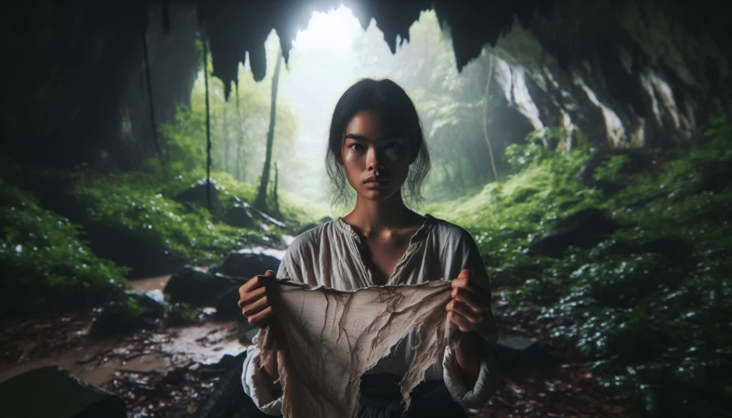 The path to The Veiled One’s sanctuary was shrouded in secrecy. Lyra and Callias moved cautiously, their journey marked by whispered warnings and furtive glances from those who sensed their purpose. The woods beyond Epidamnus were thick with underbrush and the scent of pine, a labyrinth where one could easily lose their way. With each step, the air grew colder, and an unnatural silence settled around them. The very forest seemed to hold its breath, as if aware of their intrusion. It was here, deep within the tangled heart of the wilderness, that they found the entrance—a narrow, unassuming path leading to a cave hidden by the shadows of ancient trees. Lyra’s heart pounded in her chest, but fear was a luxury she could not afford. Steeling herself, she led the way, Callias close behind. The cave was a place of darkness and echoes, its walls carved with symbols that mirrored the mark on the cloth. As they ventured deeper, the air thickened with a sense of foreboding, the weight of centuries pressing down upon them. It was there, in the heart of the cave, that they encountered The Veiled One. Cloaked in darkness, his presence was a palpable force, his face obscured by a hood that seemed to swallow the light. His voice, when he spoke, was a low, resonant whisper that reverberated through the chamber. “Why do you seek me?” he asked, his tone devoid of warmth. Lyra stepped forward, her voice steady despite the fear gnawing at her insides. “We seek the truth. The disappearances, the fear—it’s all tied to you.” The Veiled One chuckled softly, a sound that sent chills down their spines. “The truth is a dangerous thing, child. Are you prepared to face it?”